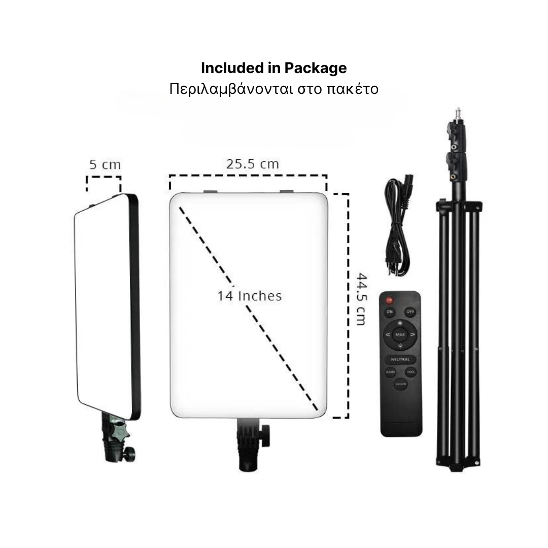 With an area of 44.5*25.5*5cm – 14 inches and its slim design, the lamp saves space in transportation, making it more suitable than traditional softboxes, especially in small spaces. Also the low heat generation and the low power consumption of only 50 W.