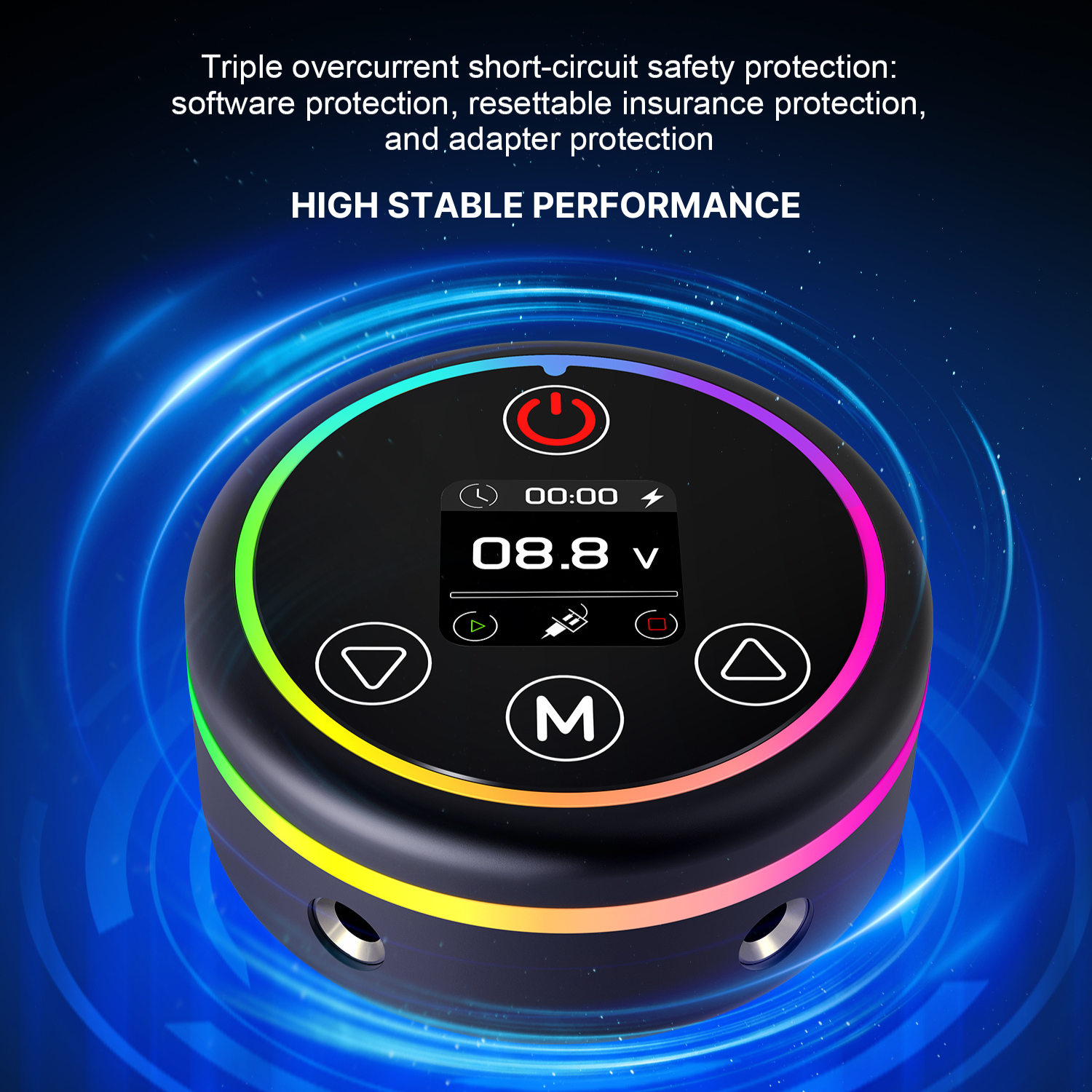 HALO Tattoo Power Supply is a powerful machine that will help you achieve long sessions smoothly without any interruptions. Equipped with three levels of intelligent A-Give control of needle force, two working modes (tattoo and permanent make-up), triple overcurrent short-circuit safety protection software, and multiple technologies like timer, memory settings and jump-start mode.