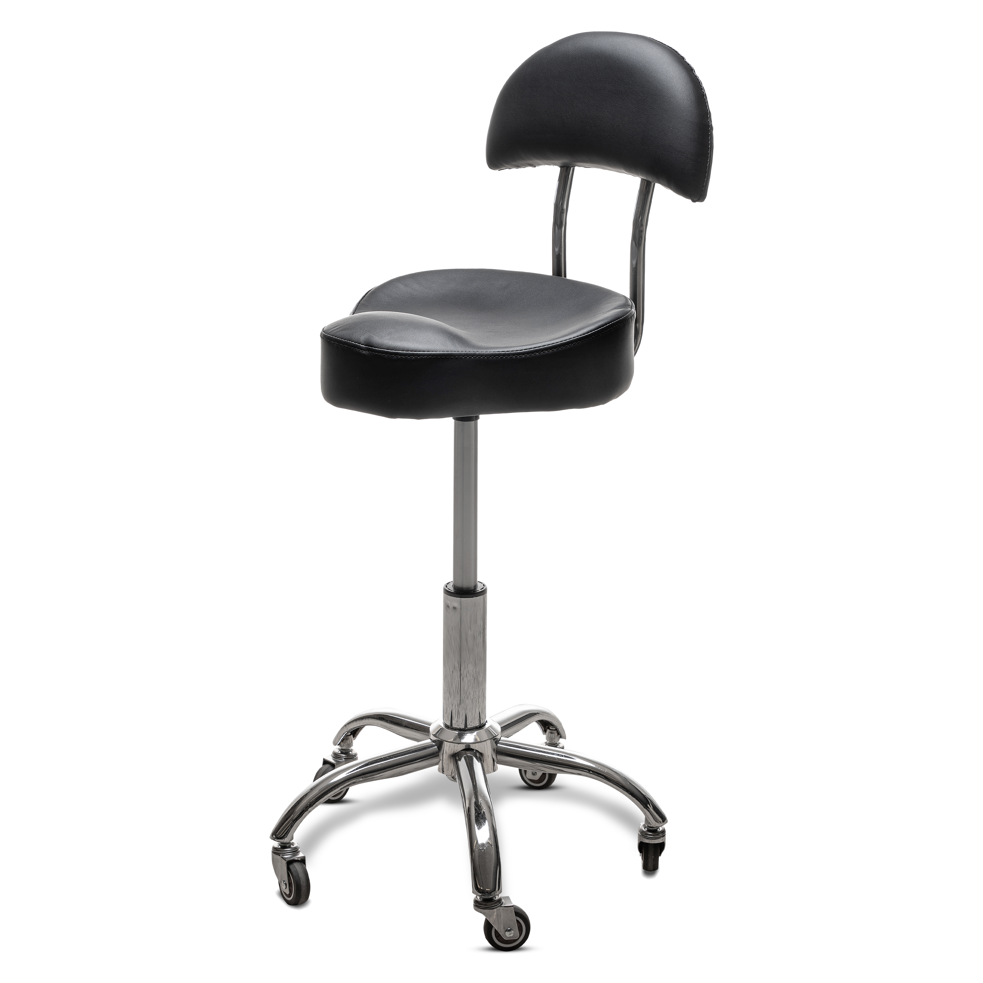 This tattoo artist chair features a thick, 8cm saddle-shaped seat for the ultimate fit. It is equipped with a backrest to support you in long tattoo sessions, and a lever to adjust the height up to 64cm. The cushions are made of durable vegan leather and soft foam padding, while the high quality wheels will help you glide through the tattoo studio with ease.