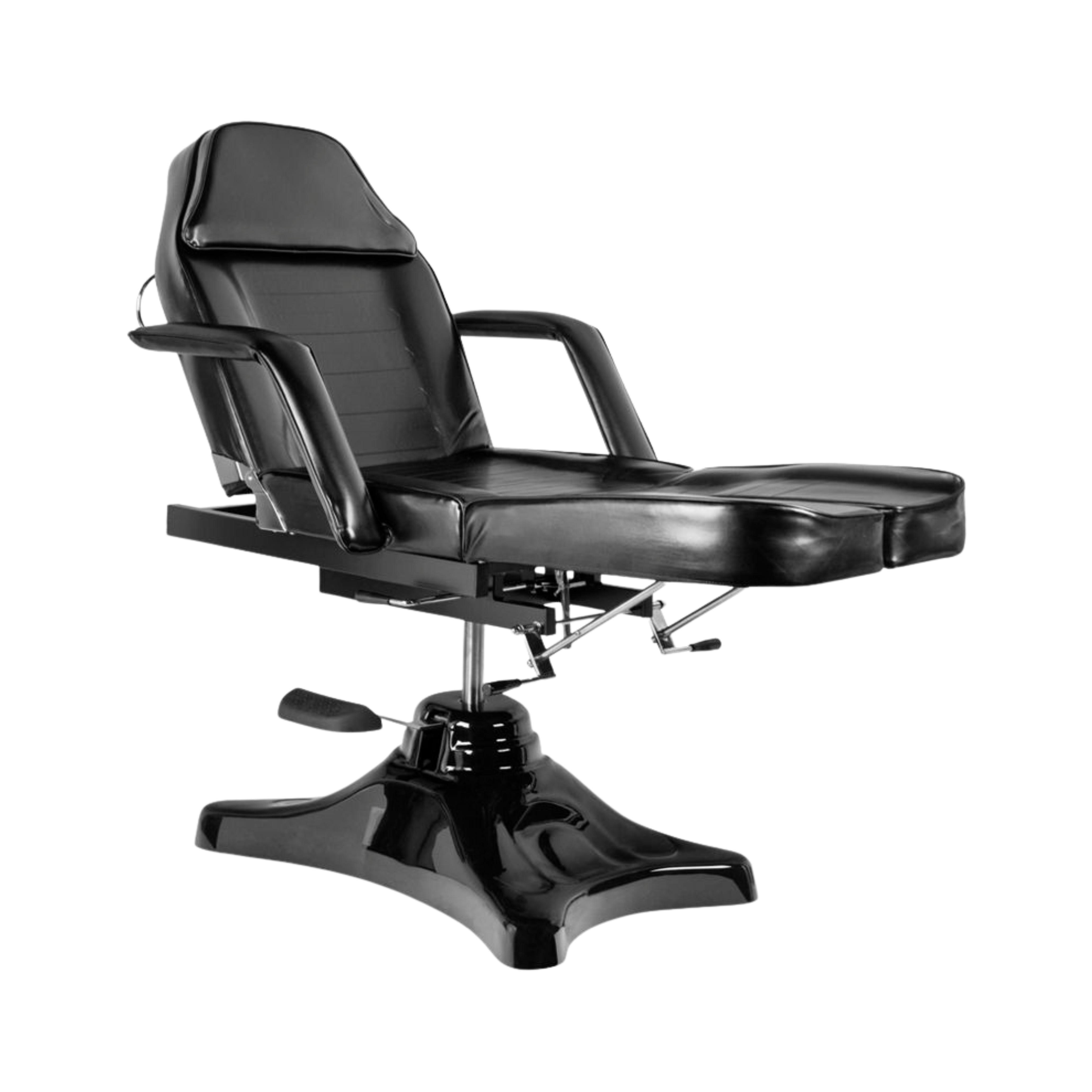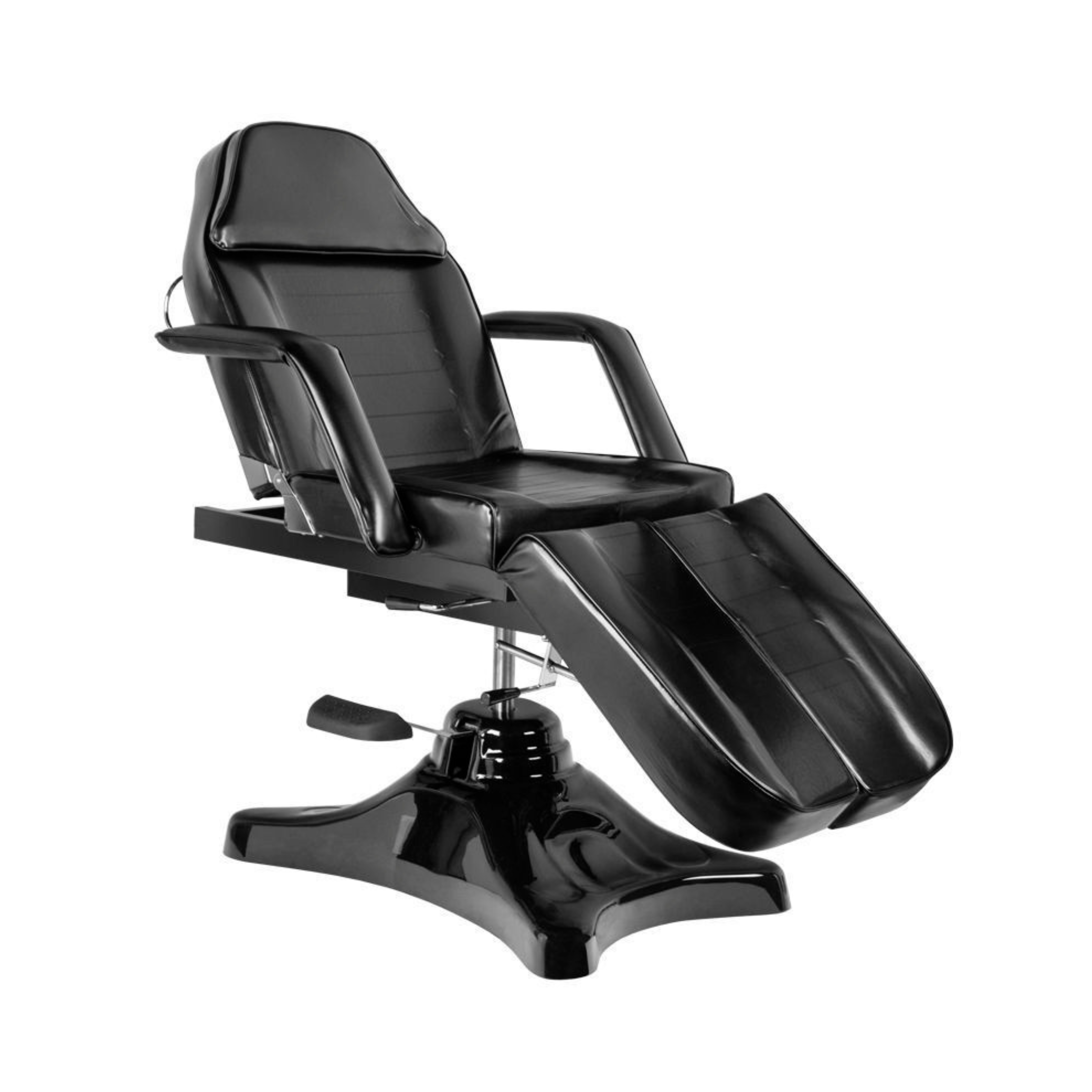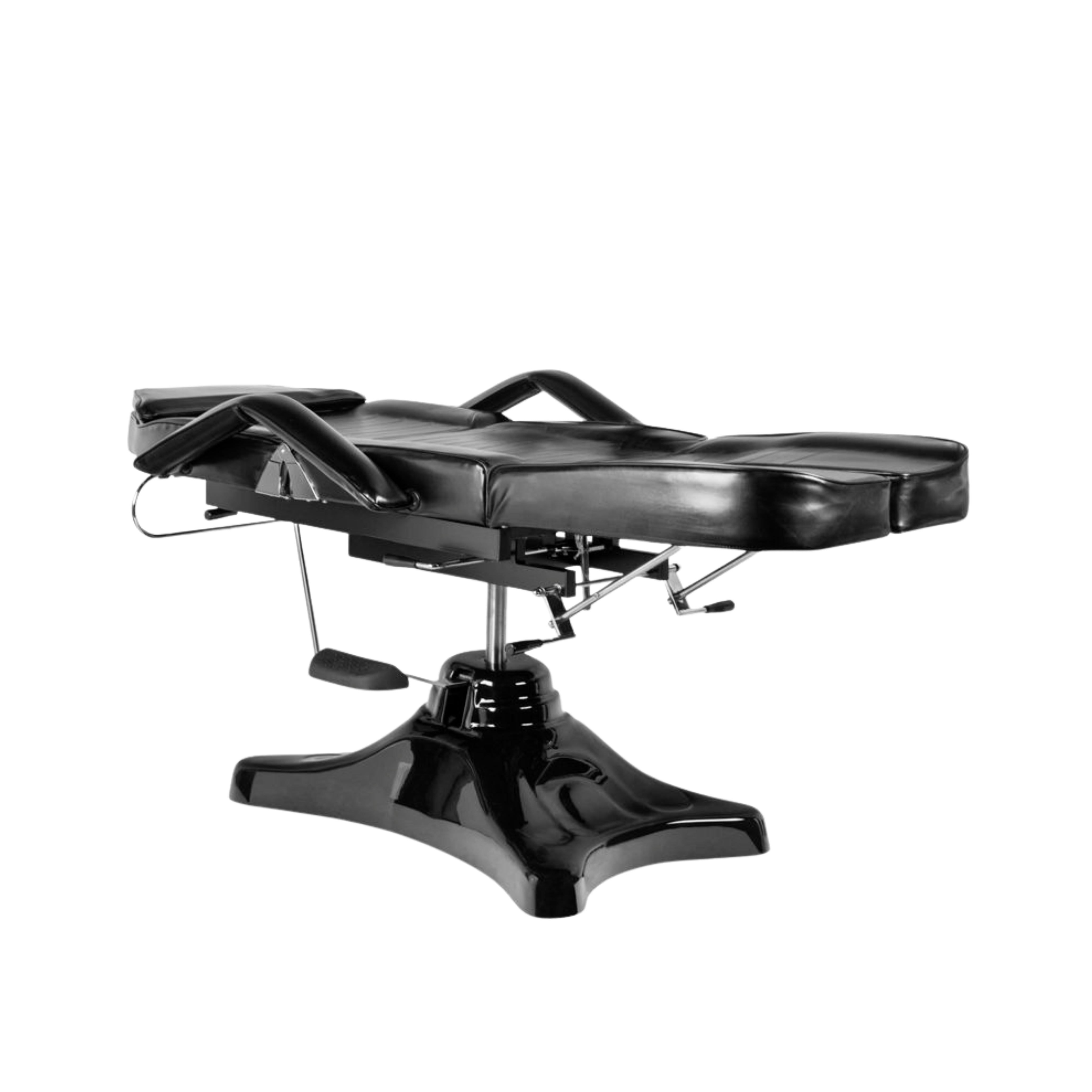 A premium hydraulic chair designed specifically for professional tattoo studios, permanent makeup (PMU), medical tattoo clinics, and advanced aesthetic treatments. The Ultimate Tattoo Client Chair features a smooth hydraulic height adjustment system, easily controlled from the rear of the headrest. The 360° swivel function ensures full access to the client from every angle. The chair is equipped with fully adjustable and independently separated leg sections, detachable armrests and a removable headrest that allow complete customization and precise positioning depending on the procedure.